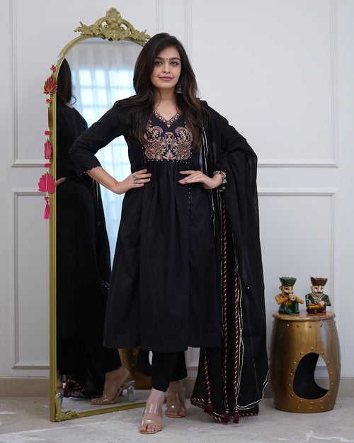 Black Cotton Anarkali Set with Yoke Embroidery -