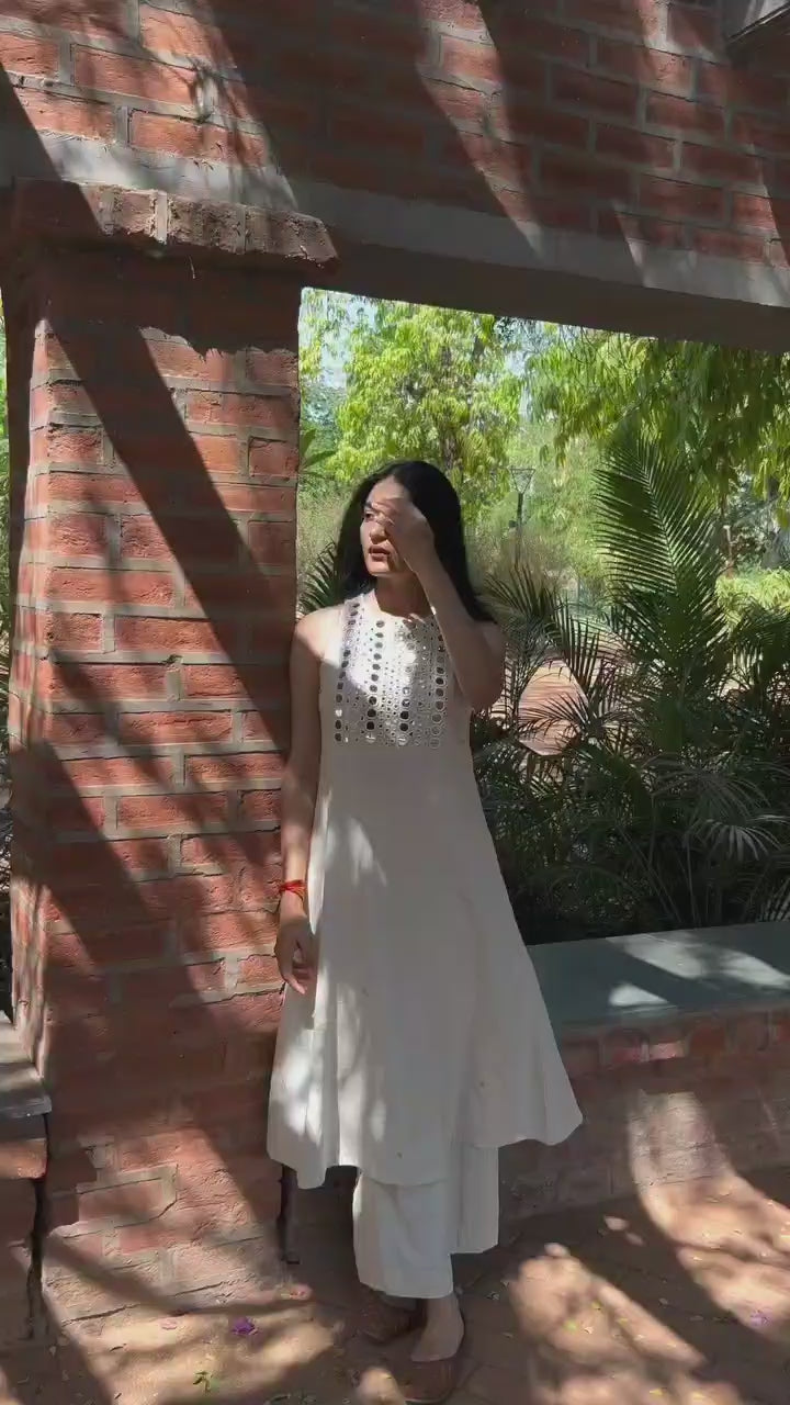Off-White Sleeveless Abhla Bharat Kurti