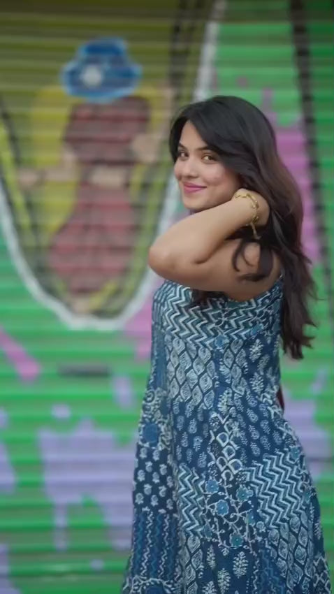 Ajrakh Print Maroon Anarkali Kurta Set with Dupatta